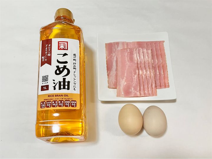 動画内で「ベーコンが多すぎた」と言っていたため、今回は100gを用意しました。