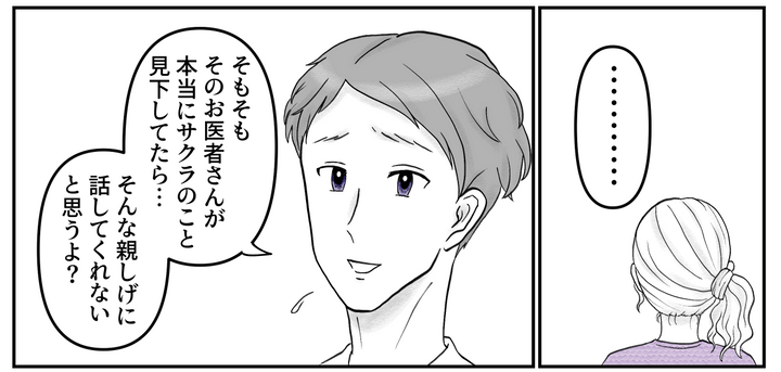 私はサクラ。会社員の夫ケンタと、こども園に通う息子との3人暮らしです。ある朝私が息子を園へ送っていくと、珍しくママ友のユリカさんに会いました。私は医師として働くユリカさんに、同じワーママとして親近感を持っていました。しかしパートの私を、ユリカさんは専業主婦みたいなものだと思っていたようです。しかも顔見知りのミナさんにグチったら「バリバリ働いている人たちは別格」と言われます。私のモヤモヤは消えなかったのでした。