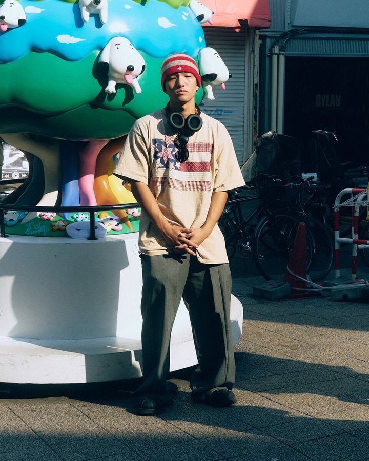 3. 【スナップ】ストリートの空気感を崩さずスラックスで“いい意味での違和感”を創出