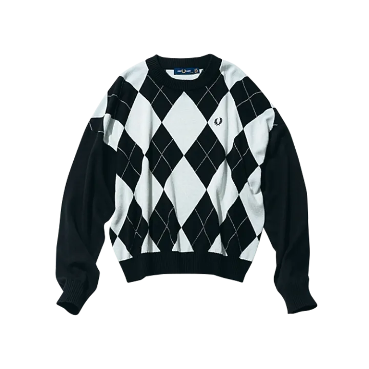 FRED PERRYらしいアーガイル柄ニットをモダンにアップデート。ゆったりとしたサイズ感だから、デニムやスラックスなどのパンツスタイルにも相性抜群。