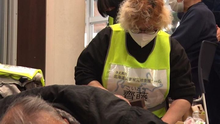 被災者やその支援者に対して「マッサージ」をする人の姿を見て、