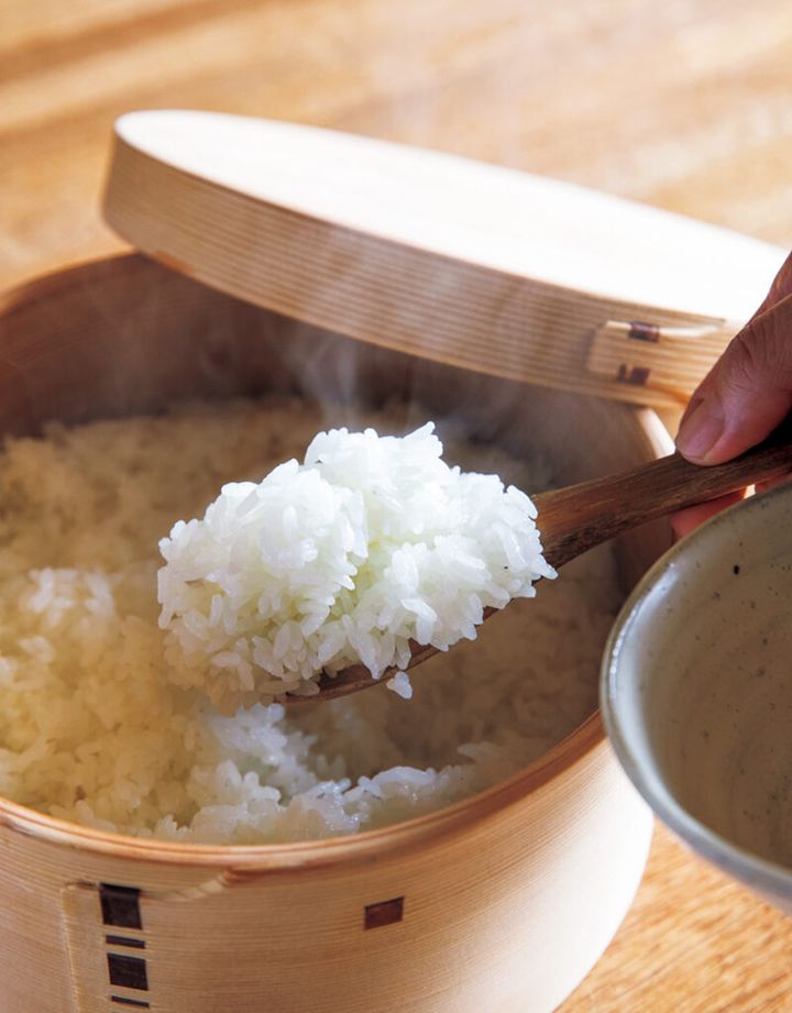 炊きあがったごはんはおひつに
