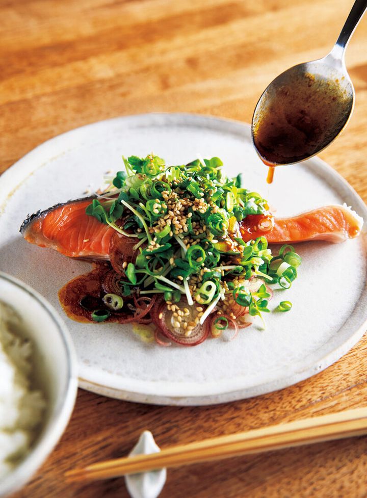 湯煮鮭の薬味のっけ