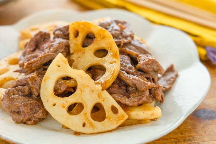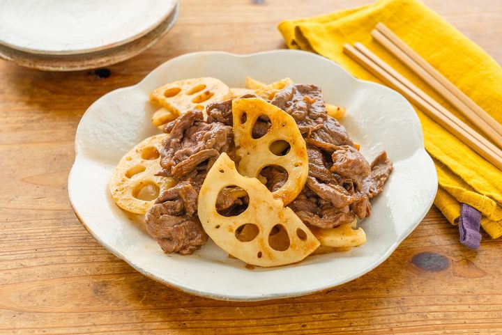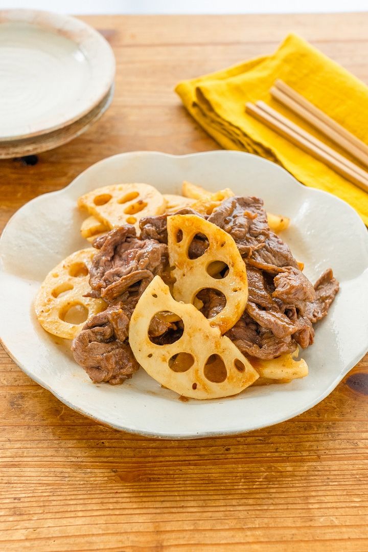 3. シャキシャキがたまらない!ごはんが進む秋おかず「牛肉とれんこんの甘辛炒め」