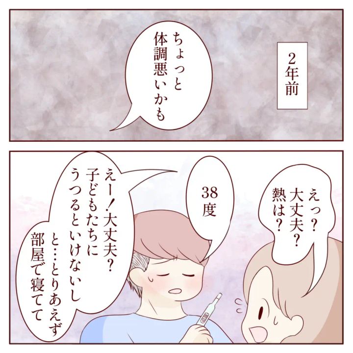 小さな子ども達にうつらないように隔離して、ご飯を運んで下げて、何度もドア越しに声掛けをしていたモエさんは、自分を介して子ども達に移る心配があるので安易に部屋へ入ることはできなかったはずです。それでもできる限りの完璧な看病をしていたと思いますが、マサキさんはどのような対応をして欲しかったのか疑問ですね。