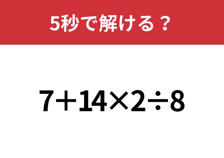 必ず正解してほしい!「7+14×2÷8」5秒で解ける?