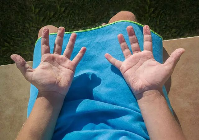手のひら・足の裏・わきなどに左右対称に発汗が見られます。小児期から思春期にかけて発症することが多く、自律神経の過活動や遺伝的要素が関与すると考えられています。