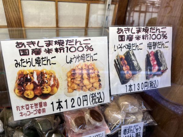 今回は人気の「あきしま焼だんご」と、気になった「あきしま名水くずもち」を購入させていただきました。