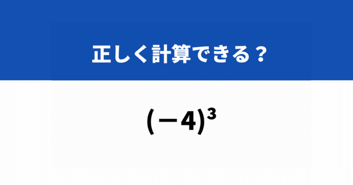 どうやって計算するか覚えてる?「(−4)^3」→正しく計算できる?