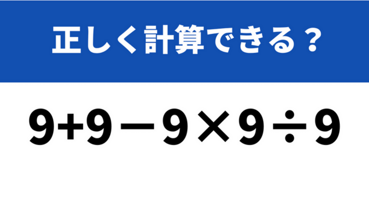 工夫して5秒で計算してみて!「9+9−9×9÷9」→正しく計算できる?