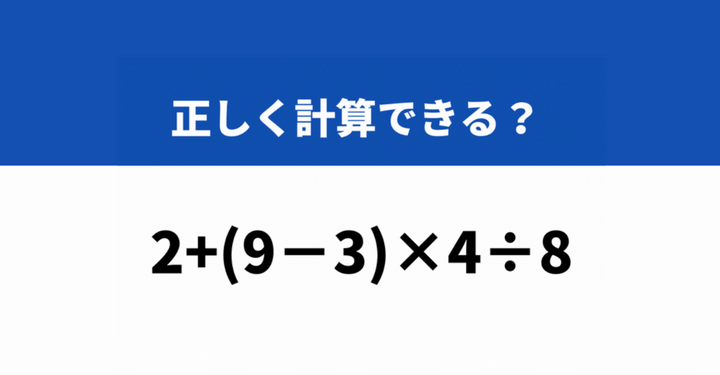 どうやって計算するか覚えてる?「2+(9−3)×4÷8」→正しく計算できる?