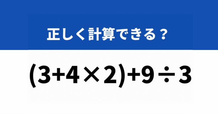 どこから計算するのが正解?「(3+4×2)+9÷3」→正しく計算できる?