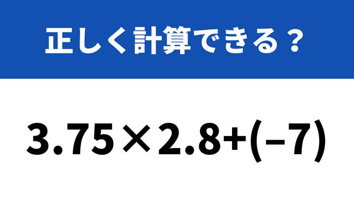 意外に間違える人が多いかも…?「3.75×2.8+(−7)」→ 正しく計算できる?
