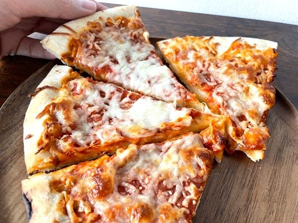 生地はクリスピーのような薄さではなく、しっかりと厚みがあって食べ応えがあります。1枚が本当にしっかり大きいので、1人で1枚が食べきれないほど。半分にして残りは冷凍庫にストックしておくということができるのも冷凍食品の嬉しいところですね。