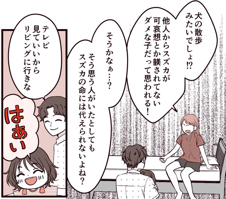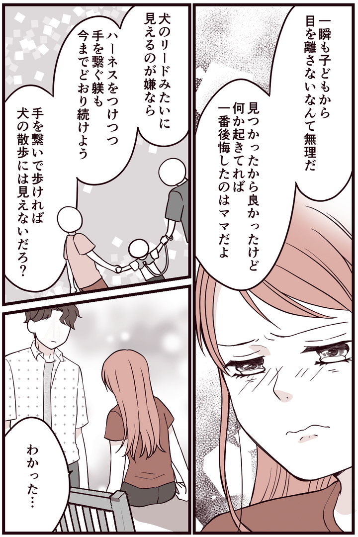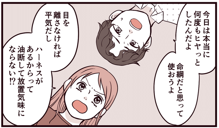 その後も夫とハーネスを使うかどうかについて話し合いが続きます。