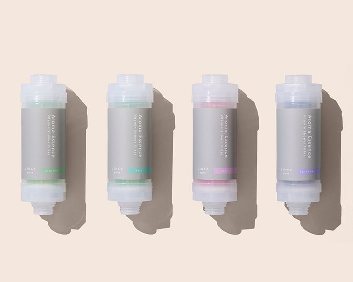 「浴びる美容液」をコンセプトにした新感覚シャワーフィルター。高濃度ビタミンC配合により、塩素を99.99%除去しながら抗酸化ケアを同時に実現。さらに、ティーツリー抽出物など自然由来の美容成分が、髪や肌にしっとりとうるおいを与えます。香りは、人気のラベンダー、ローズ、ジャスミン、ライムの4種類。その日の気分に合わせて取り替えれば、毎日のバスタイムが癒しの時間に。取り付け方法は、シャワーヘッドとホースの間にフィルターを差し込むだけ。工具不要で簡単に取り替えられます。