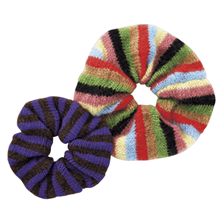 ボリュームたっぷりのニットシュシュは、髪はもちろん手首に着けても可愛い。モヘアシュシュ小¥14,300(トマサ×シンゾーン)、同 大¥16,500(トマサ/全てシンゾーン 表参道本店)