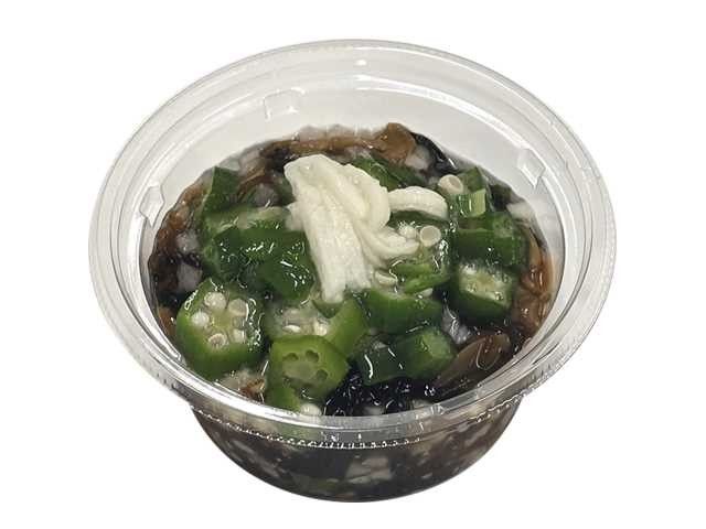 オクラや沖縄県産もずく、なめこ、めかぶなどのねばねば食材と、ダイスカットした大根サラダをゆず風味のだしで味付けした、さっぱりとした味わいのサラダです。