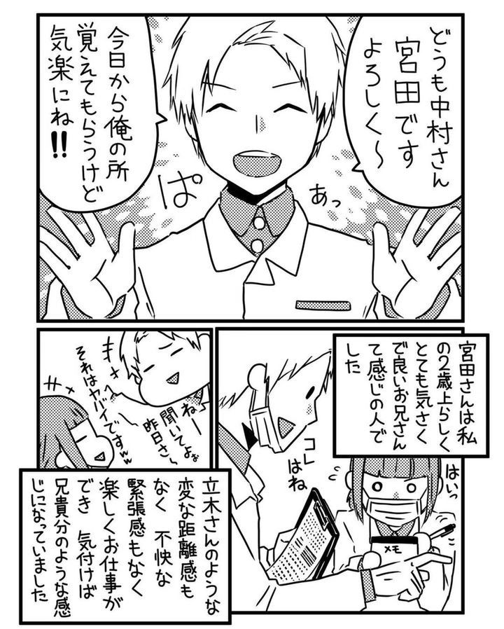 宮田さんには立木さんから告白されたことも見透かされていたようです。なぜなら、勝手にライバル視されているようで、立木さんからにらまれるとのこと。それでも、宮田さんからは中村さんの助けになると優しいフォローの言葉が。悩んでいるところで、この優しさはしみますよね。