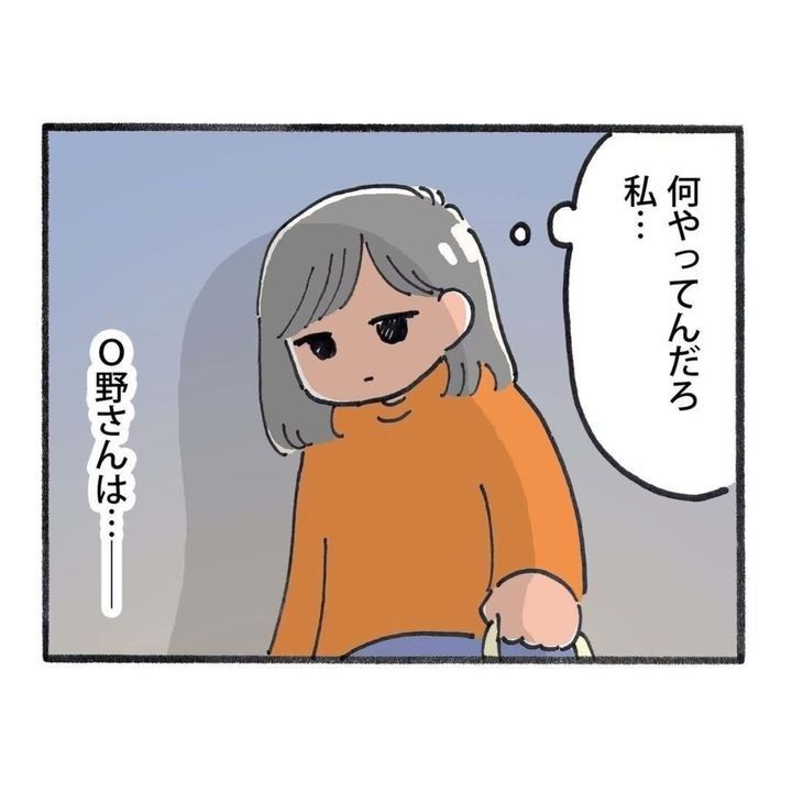 会社での孤独感を、O野さんの優しさで埋めて、彼を利用していたのではないかと思うM子さん。最近のO野さんとのやりとりを振り返り、そんな自分がバカみたい…と思うのでした。
