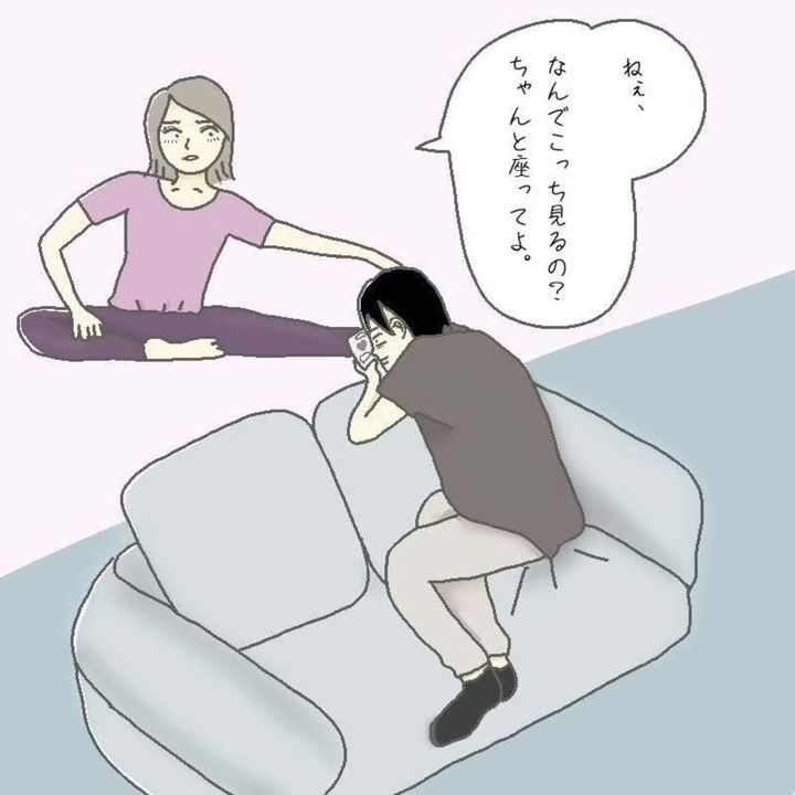 #5 顔をこちらに向けながらケータイをいじる夫「見てるよね?」「見てない」|結婚10か月でサレ妻に転落