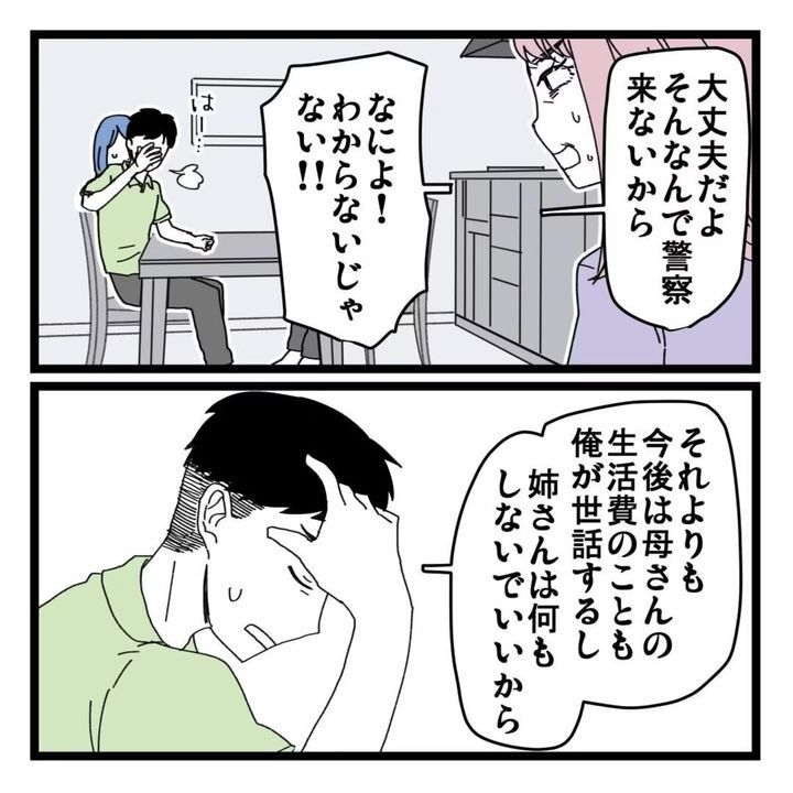 夫は、不自然なお金の動きがあったためカードを止めたことを伝えます。しかしC子は興奮し、「警察が来たらどうしてくれるのよ!?」と騒ぐのでした。