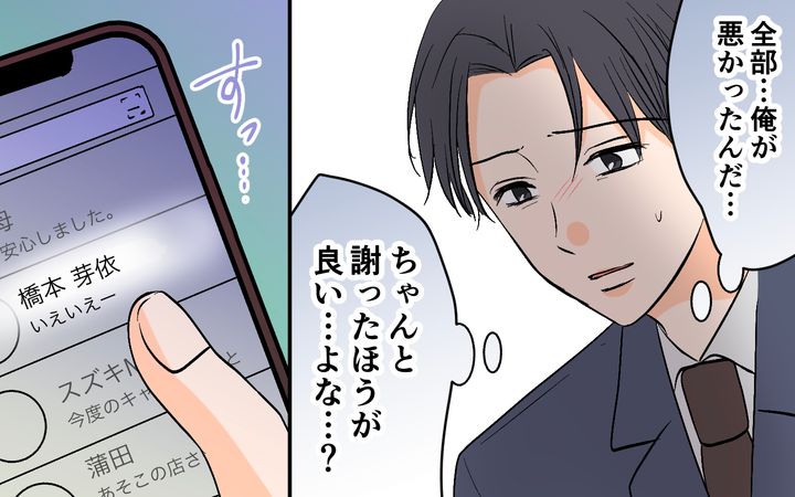 やっと反省した夫は女性部下の連絡先を開き…<思わせぶりなチャラ夫 15話>【夫婦の危機 まんが】