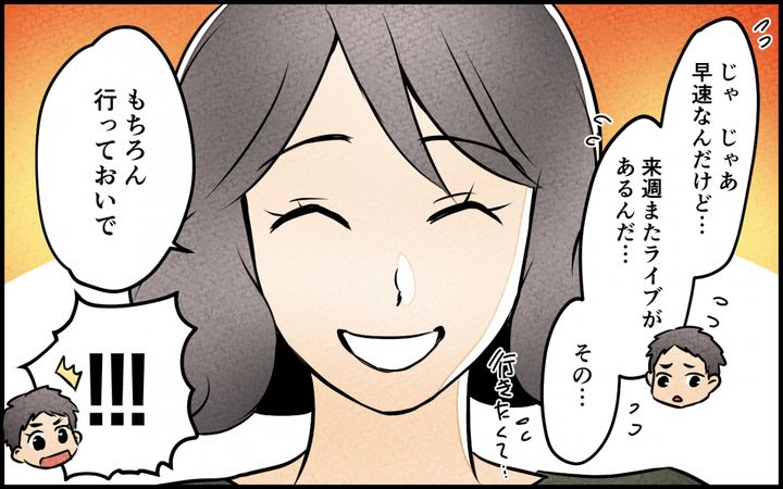 「ライブも推し活も好きにしていいよ」夫に理解を示す妻の真の狙いとは…?<うちの夫が誰かに貢いでる 10話>【夫婦の危機 まんが】