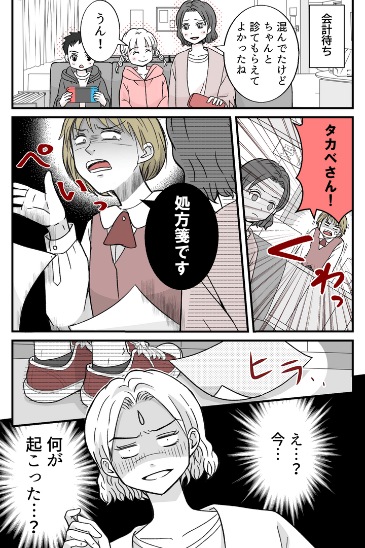 診察が終わり、待合室で会計を待つ私と子どもたちは、無事に診察が終わりホッとしていました。しかし受付の女性から処方箋を投げつけられるように渡され、明らかに不機嫌な様子で物に当たる姿も見せつけられたのです。