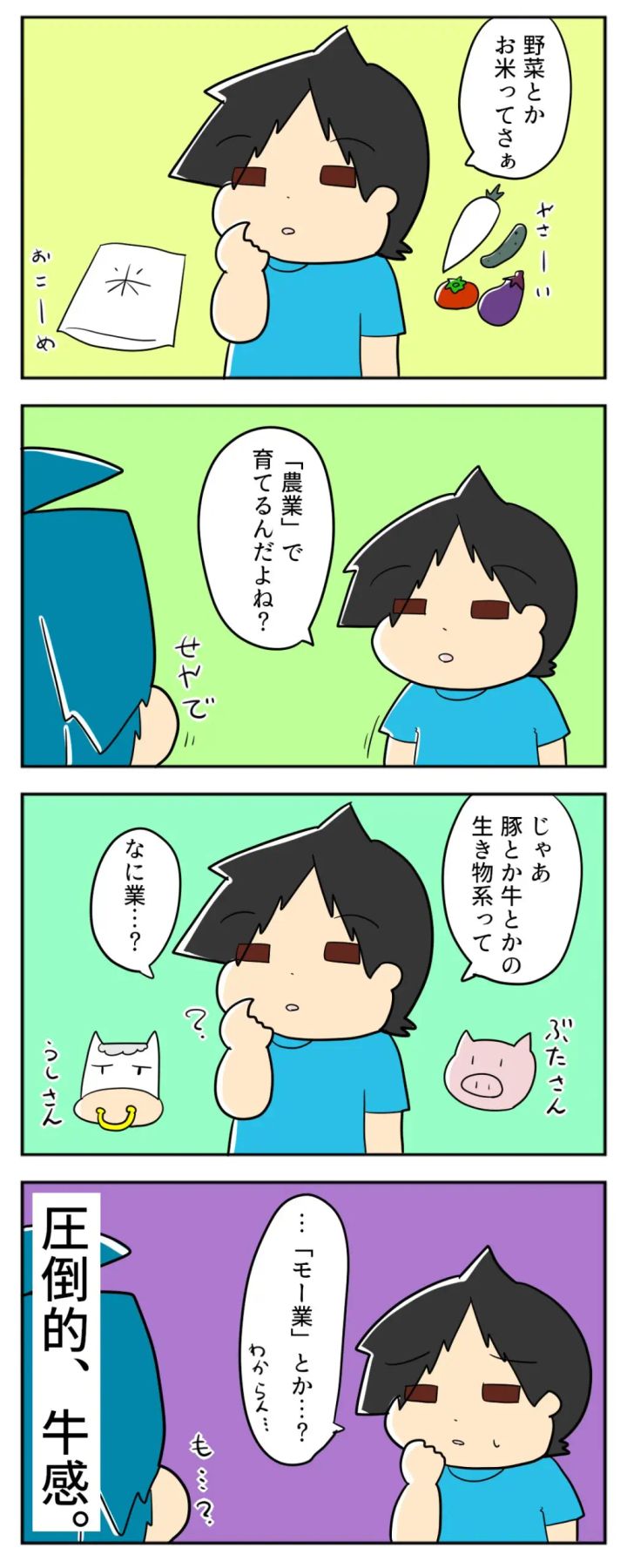 3. 圧倒的な牛感!家畜を育てるのは何業?に対する小学生男子の珍回答|mochikoの育児マンガ
