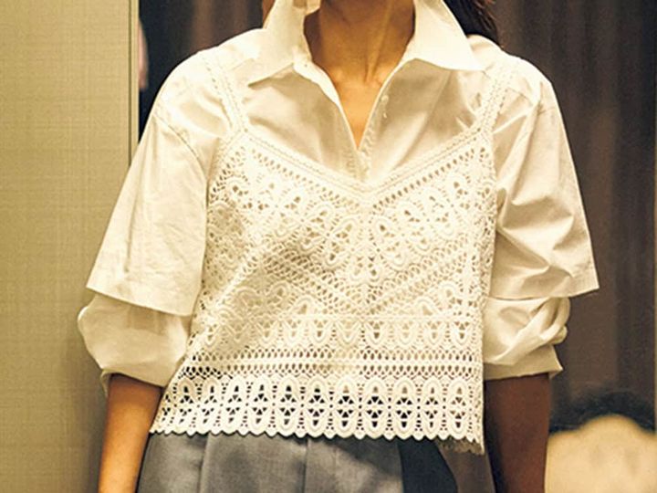 キャミソールは前後どちらも着用可能な2WAY仕様で、着こなしの幅が広い。いつもの白シャツが一瞬で旬のコーデに。