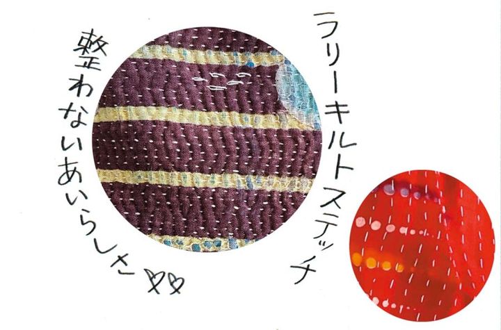 古布を重ね合わせてランニングステッチで縫い合わせる技法。