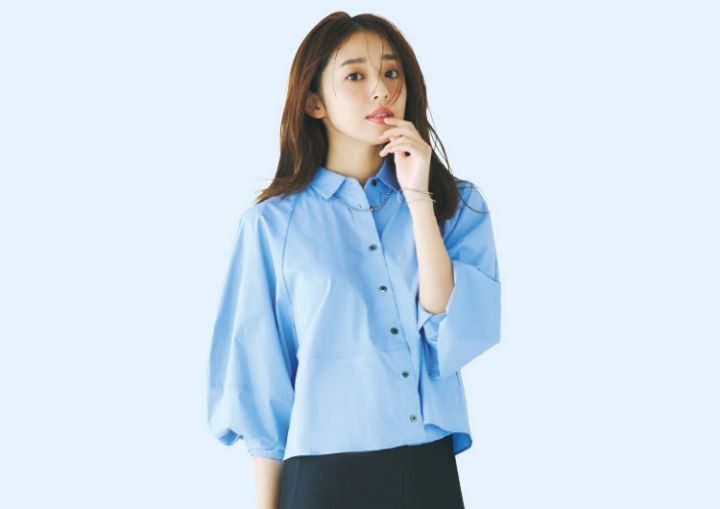 クロップド丈にすると、シャツが一気にモードな印象に。ガールのクローゼットによくあるナロースカートを合わせれば、コーデがアカ抜けます。ほどよく女っぽさがキープされるのも◎。