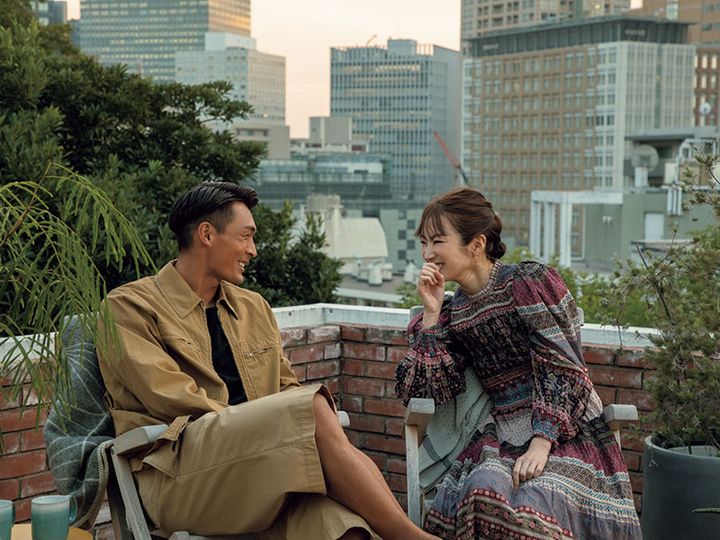 【高梨さん】ワンピース¥62,700(シーニューヨーク/ブランドニュース)その他スタイリスト私物【槙野さん】ジップシャツ¥84,000中に着たTシャツ¥22,000パンツ¥75,000スニーカー¥75,000(すべてルメール[スクワット/ルメール])