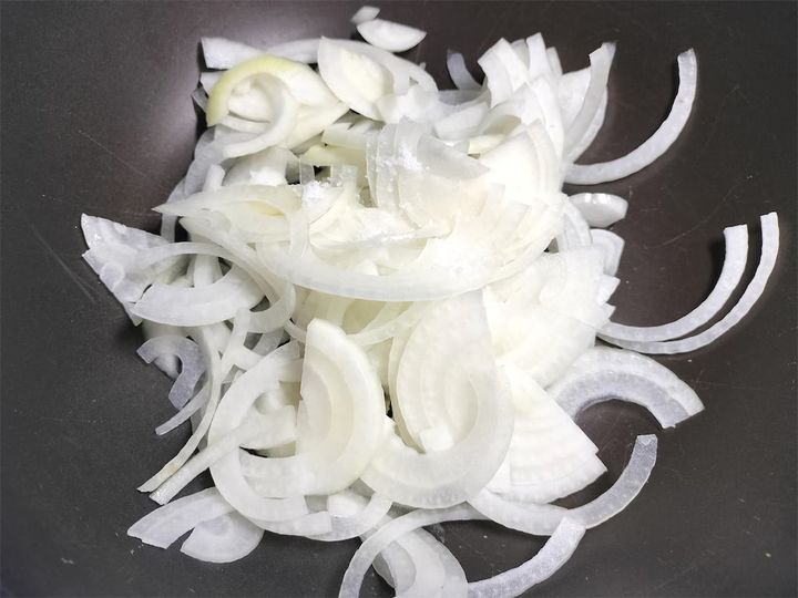 玉ねぎは繊維に逆らって薄切りにしておきます。