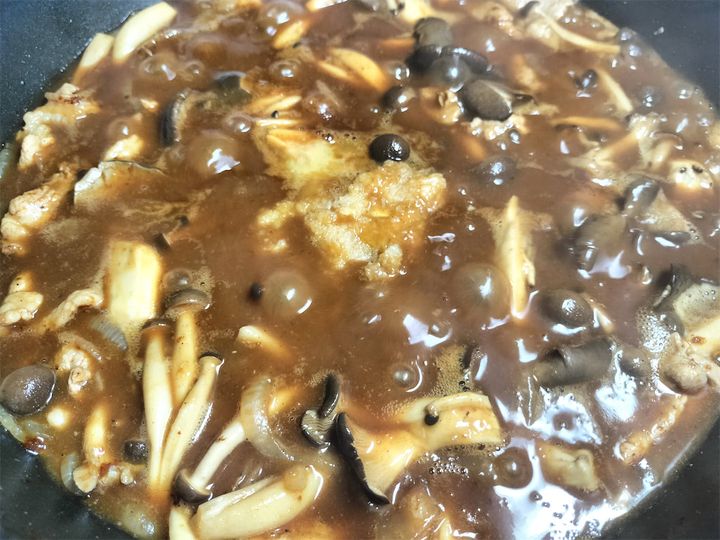 これほど大量のきのこが鍋にぎっしり入っているのは、これまで見たことがありません。きのこ鍋だって、ここまで入れることはないのでは…?と思いつつ、火が入るのをじっと待ちました。