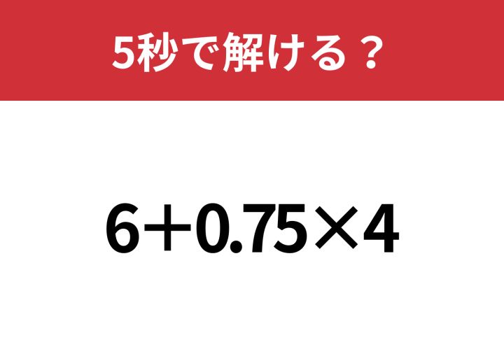 小数のかけ算には注意して!「6+0.75×4」5秒で解ける?