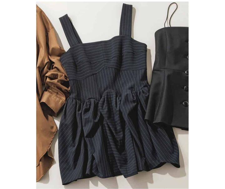 ネイビーピンストライプペプラムトップス¥28,600(カデュネ/カデュネ プレスルーム)
