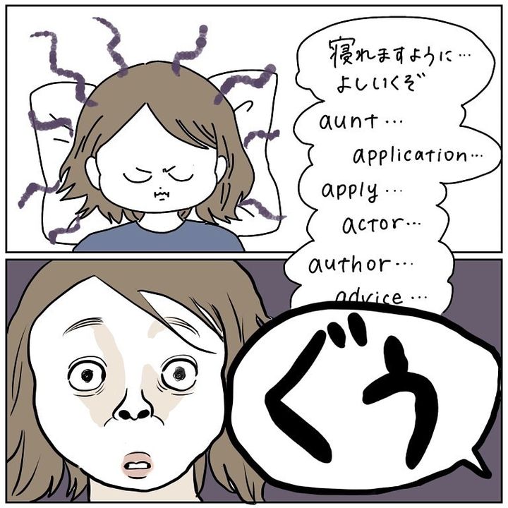 3. 【秒速入眠できる裏ワザ!?】寝付きが良すぎる夫直伝「Aから始まる英単語」を数えてみた結果…【momoの漫画】