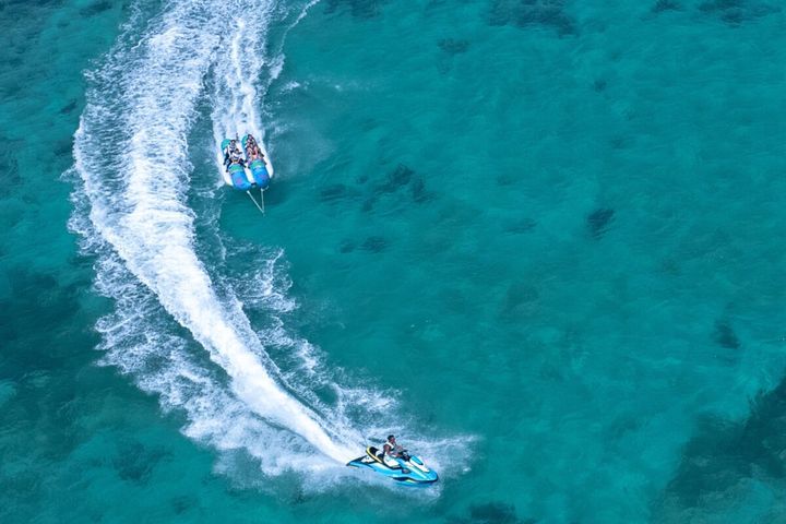 天気が良かったのでシーサーを作った後、バナナボートクルージングに。こちらのアクティビティは、BOOKS&CAFEに併設しているビーチから発着するバナナボートでクルージングを楽しめるんです。なんとこちらも予約不要!当日の波の高さや天気によって体験できるか決まるので、カウンターで聞いてみるのがオススメ。この日は途中まで波が高く体験できるかわからないと言われていたのですが、運よく体験できるコトに!いざ乗るとすごいスピードで手も放す余裕がありませんでした……(笑)。ただスピードは言えば下げることも上げることもできるので、振り落とされたい方はぜひ猛スピードを希望してみてね♡ ポイントに着くとサンゴ礁を海上から優雅に眺めることもできちゃいます!こちらのアクティビティは大体30分ほどで終了。