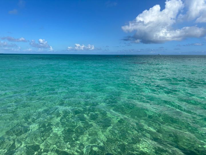 2日目同様に「Ooli Ooli」で朝食を食べ、シュノーケリングに向かう前にホテルをチェックアウト。そしていよいよこの旅で一番楽しみにしていた「幻の島シュノーケリング」へいざ出発! 地元の方にも幻の島のシュノーケリングは絶対に行った方がいいよ!とオススメされたのでとにかくウキウキ! ただ、シュノーケリングをしたことがない私は楽しみさ半分ドキドキ感半分で向かうことに……。幻の島に行くまでは小さな船で向かいます。三半規管弱めな私でも酔うことなく、幻の島へ到着。着くまでも海はずっと綺麗なのですが、幻の島へ着くと綺麗さが段違い! シュノーケリングを行う前に海に入り、少しフリータイム。船員の方が写真を撮影もしてくれます。(優しい!)