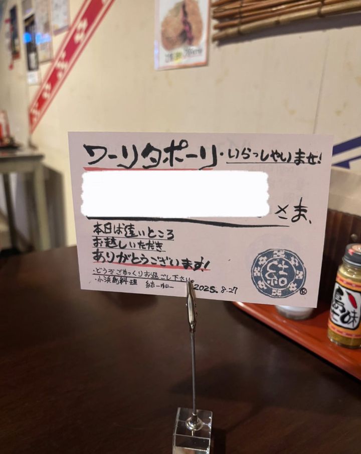 -お店に着くと素敵なウェルカムメッセージが用意されていました