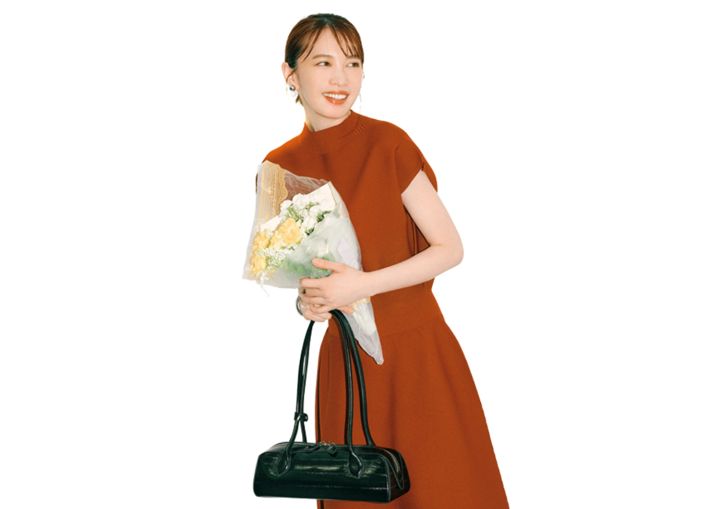 立体シルエットのニットワンピは着映え度抜群!着るだけで肩まわりとウエストを細く見せてくれるワンピにきれいめ小物を携えて、エレガントに。ブーム継続の横長バッグは艶やか素材で気分転換して。