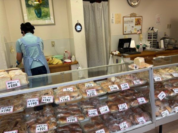対話しながら選ぶ醍醐味も♪先客の常連さんは、パンだけでなく、「ドーナツもおすすめですよ!」と。研修スタッフさんは、「チョココロネ、チョコクリームがめいっぱい入っていますよ~。」と笑顔で語ってくれました。「あ、買います!」あとは~~♪