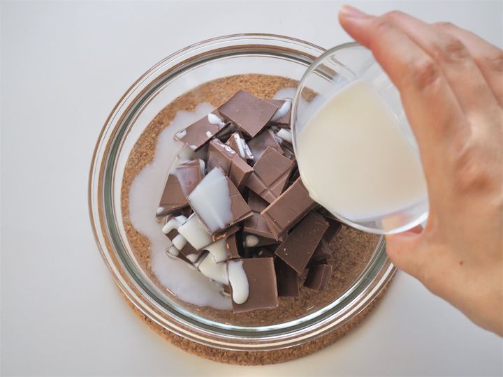 チョコレートは溶けやすくなるよう、できるだけ均等に小さく割っておくといいでしょう。