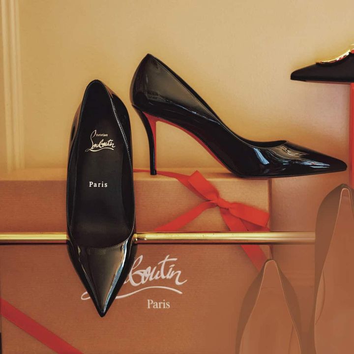 足元を美しく魅せる、シャープなカッティング。シンプルな顔立ちに、ルブタンの証であるレッドソールが映える。