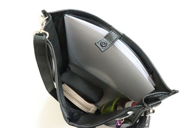 重厚感があるのに、フェイクレザーなので、すごく軽く持ち運びしやすいです。