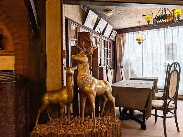 金色の鹿がお出迎え。お店のロゴにもいますね