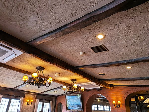 内装は土のような風合いの壁に木のハリがあり、別荘地や高原ホテルのような趣を感じました。