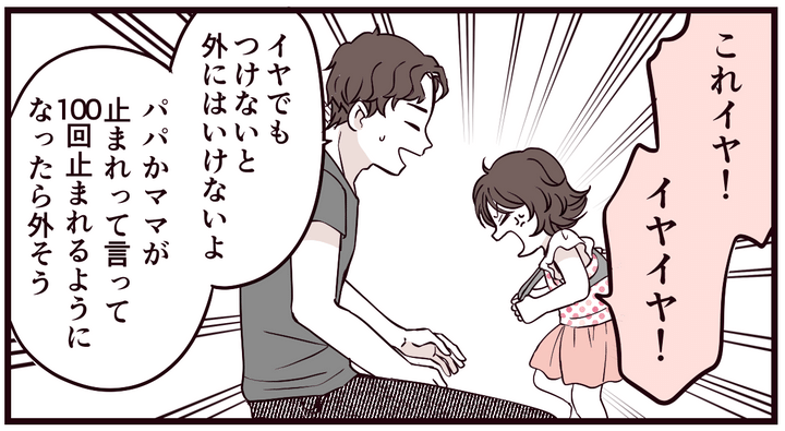 私はアカリ(30代)。先日夫が娘のスズカ(3)に子ども用ハーネスを注文しました。ちゃんと見ていれば大丈夫だと思ってハーネスの使用は反対しました。だって使っている人が周りには誰もいないし、見たこともないから。躾をしないでこんなものに頼って、そう周囲に思われたくありません。ただ、スズカの育児に疲れ切っていたことは事実だし、夫はもう注文してしまったと言います。夫がいるときなら、と、ハーネスの着用をOKしました。